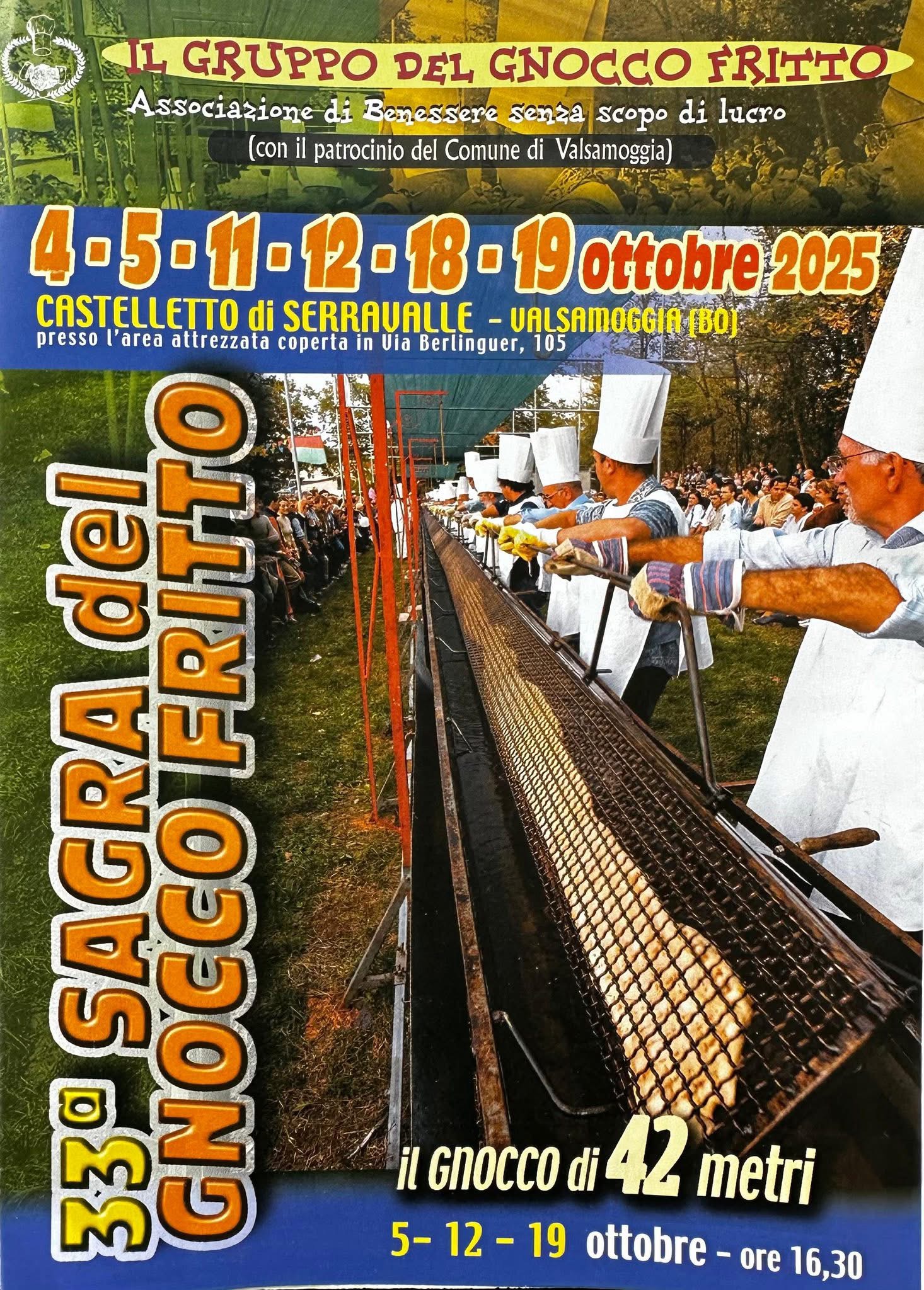 Castelletto di Serravalle (BO) Sagra del gnocco fritto serata da ballo + Aggiungi a Google Calendar + Esporta iCal Data Ott 12 2025 Ora 20:30 Ora locale Fuso orario: Europe/Rome Data: Ott 12 2025 Ora: 21:30 - 19:00 Condividi questo evento